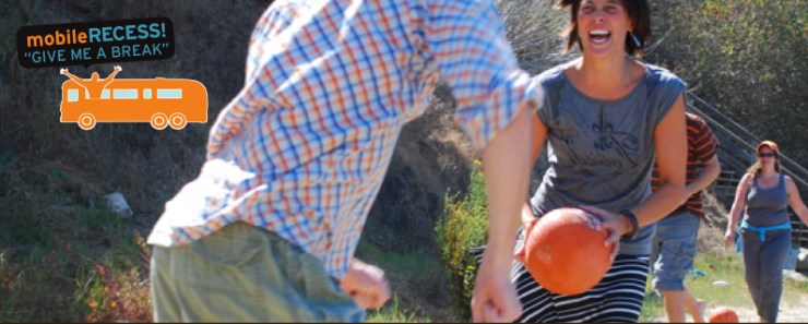 So we arrived at this secluded beach on treasure island (one of many places mobile recess goes)…After we finished [a slew of hilarious games, I hadn’t played in 20 years!] some of us jumped in the COLD, but refreshing Bay for a swim before boarding the bus again and heading back to the City.  The whole thing took about 2 hours and we were back to our life as usual…just majorly refreshed! – Claudia M.,